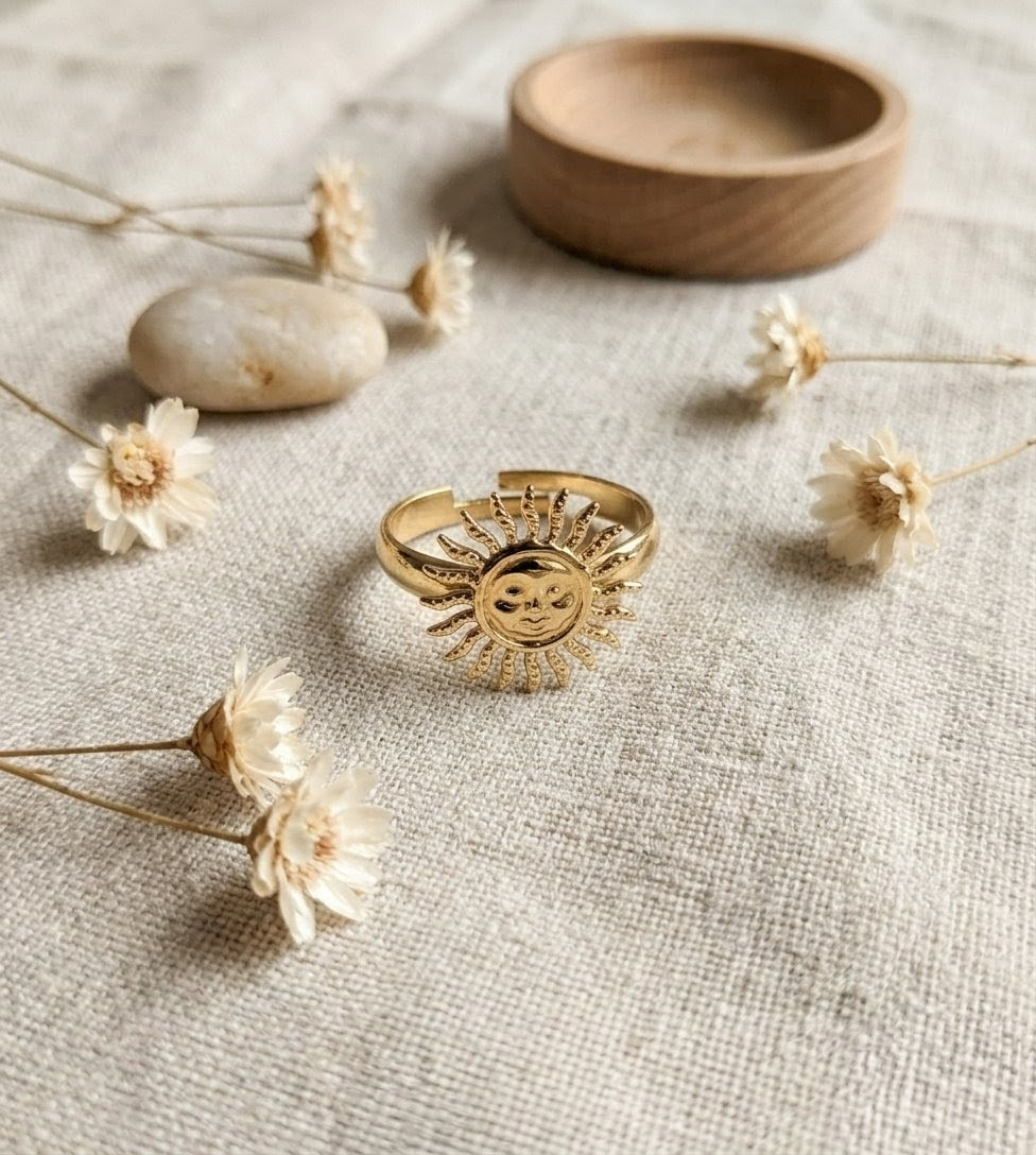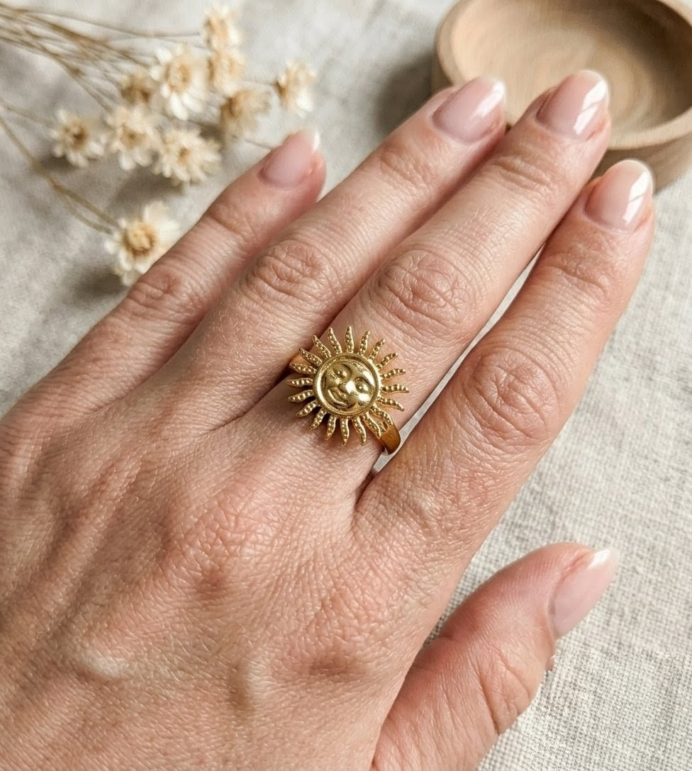 Craque pour cette jolie bague en forme de soleil, au design fin et délicat.